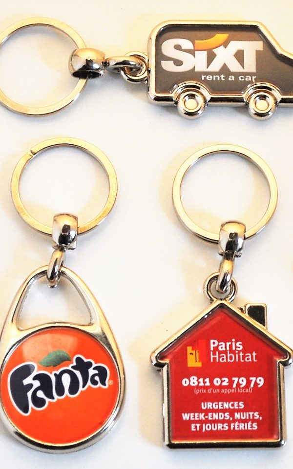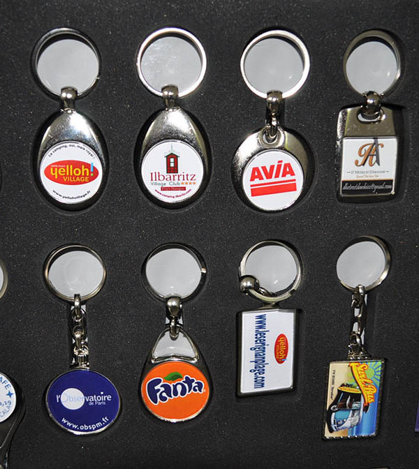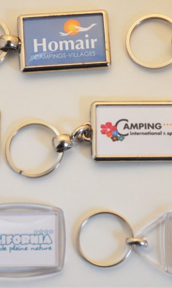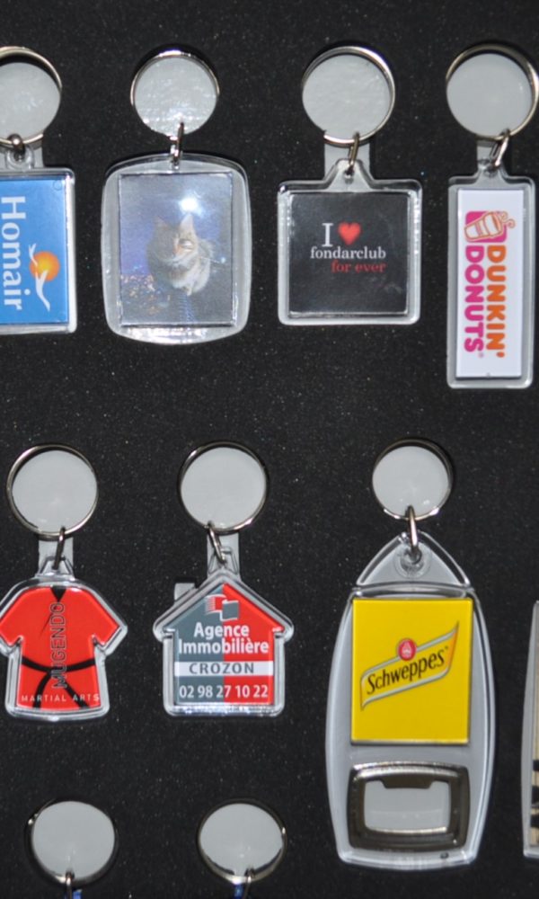 - porte-clés métalliques ou acryliques